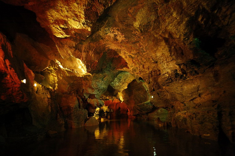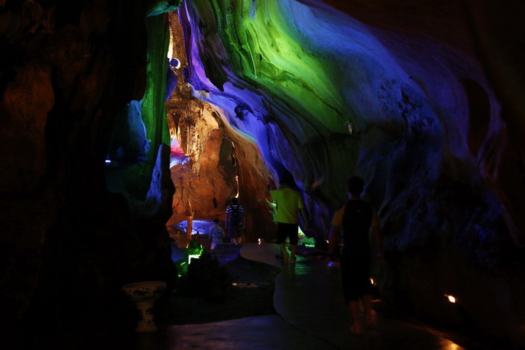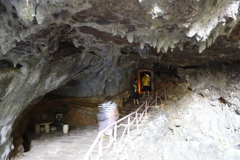 洞外是稠密的綠色植被,悶熱的空氣,來到洞口,感覺就像站在巨大的冰窖門口,一進(jìn)洞,傳來陣陣陰風(fēng),被汗?jié)竦囊路ⅠR變得冰冷,氣氛也變得詭異起來。很有一番探險(xiǎn)小說的恐怖氣氛。