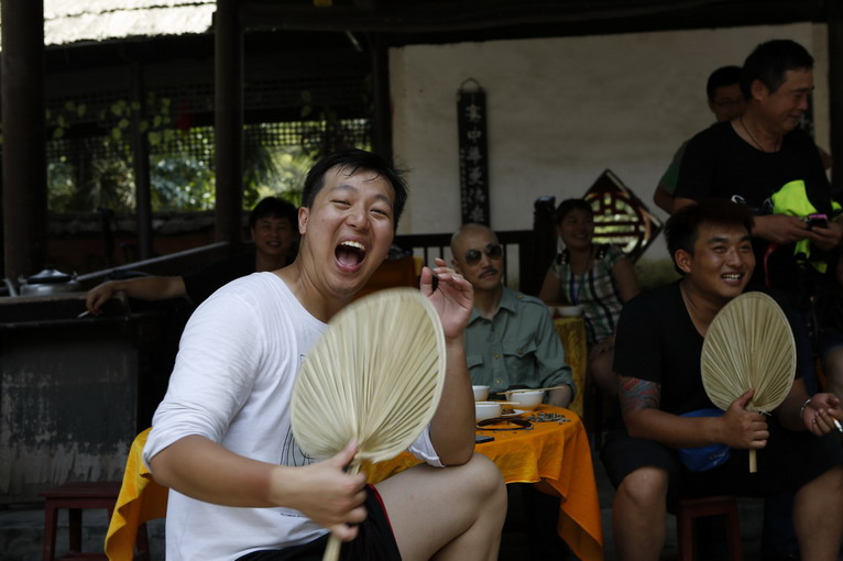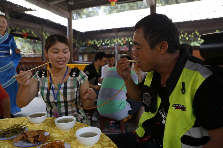 在桃花源內(nèi),騎手們見過秦人村村長,受到熱情的擂茶宴款待。