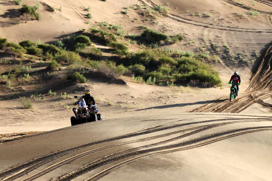 9月2日, 2014中國越野拉力賽(CGR)結(jié)束了第二階段(天鵝湖賽段)的比賽, 今天進行的是騰格里沙漠天鵝湖賽段的較量,總里程約為162.5公里,賽段在天鵝湖至阿拉善左旗工業(yè)園之間展開,賽段里程約為132.5公里。當(dāng)天共有47臺汽車、9輛摩托發(fā)車,雖然特殊賽段里程要比昨天短,難度卻更高,仍然有將近過半的車手沒辦法在最大給時內(nèi)抵達(dá)終點。