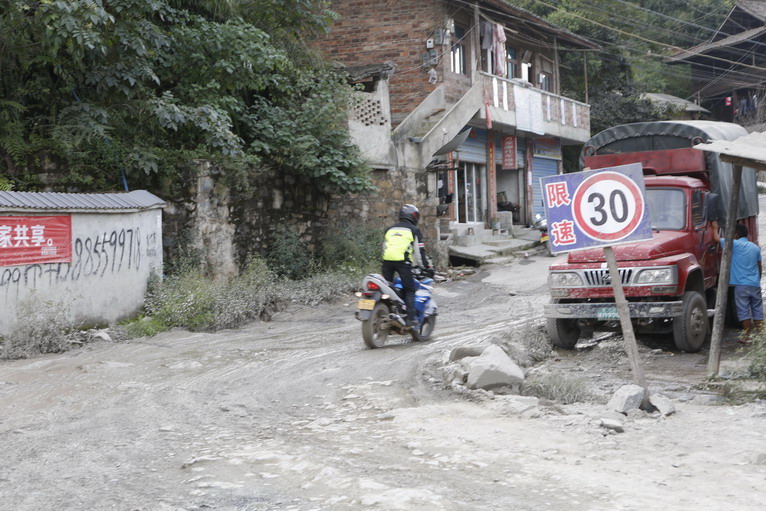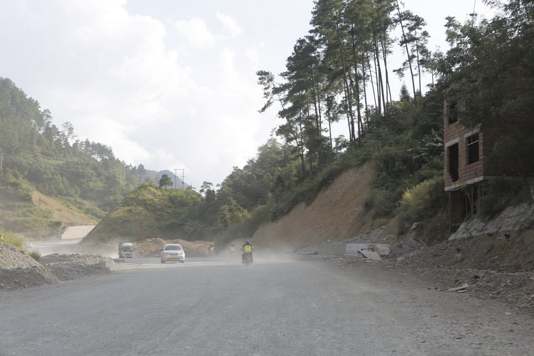 轉(zhuǎn)至前往千戶苗寨的G320國道,越野級別的數(shù)十公里的惡劣路況開始了,據(jù)當(dāng)?shù)厝苏f,由于高速路網(wǎng)建設(shè)已經(jīng)相當(dāng)發(fā)達(dá),所以大型土木,全面發(fā)展全省公路,與一般封閉半邊道路的修路方式不同,這邊的修路采用推倒重來的方式,所以原有的G320國道,多處都呈現(xiàn)鏡頭中的這種狀況,部分路段還無法通行,必須走小路繞行。