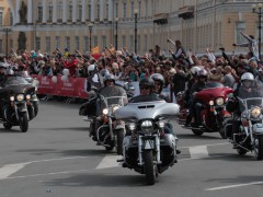 當?shù)貢r間2016年8月13日,俄羅斯圣彼得堡,一年一度的“哈雷日”在冬宮廣場(Palace Square)舉行,數(shù)千摩托車粉絲前來參加。