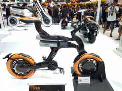 除了過往已經展出過的、能夠張開 “ 蝴蝶 ” 般的翅膀的 04 GEN 踏板概念車之外,Yamaha 在這次的展覽會上還展示了兩款首度亮相的概念車:充滿未來科幻感的踏板概念 QBIX;以及極端簡化,采用了碳纖維車架、電機驅動的山地兩輪概念車 Extra。