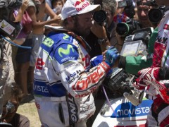 阿根廷四輪摩托車手科佩蒂拖著智利摩托車手洛佩斯
