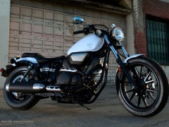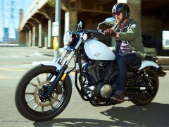 Yamaha 日前向美國市場發(fā)布了全新的車型2014' Bolt。新車使用一副經(jīng)由V Star 950(歐洲版稱之為XVS950)所改良而來的風冷四沖程V型兩汽缸、OHC每汽缸四汽閥發(fā)動機,排汽量942cc,電子燃油噴注系統(tǒng),五檔的齒輪箱,皮帶傳動。