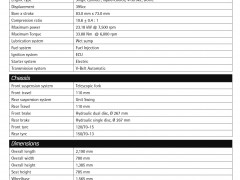 新的X-Max 400 使用一副水冷四沖程單汽缸、DOHC 四汽閥的發(fā)動機,排汽量395cc,電子燃油噴注系統(tǒng),最大動力輸出23.18kw。車身方面,整體的設(shè)計非常緊湊,運動化的造型采用了符合空氣動力學(xué)的元素。剎車系統(tǒng)是前雙后單、直徑均為267mm浮動式剎車碟的配置,前15英寸、后13英寸的車輪,LED的后尾燈,可容納兩個全盔的座位下儲物箱,容量為14升的油箱,全車整備重量211公斤。