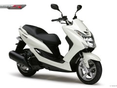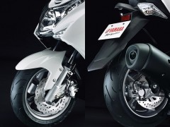 該車由臺灣山葉負責生產(chǎn)(SMAX 155,相關簡介可參閱這里),工廠編號JBK-SG28J,使用一副編號為G3B8E 的水冷四沖程單汽缸、OHC 四汽閥的發(fā)動機,排汽量155cc,缸徑 x 行程為58.0 mm × 58.7 mm,電子燃油噴注系統(tǒng),最大動力輸出11 kw(約15匹)。車身方面,車架采用了骨架式的傳統(tǒng)設計,但前后連接經(jīng)過了加強,同時也增加了一條橫向的焊接管以加強車架的剛性。前、后13英寸的車輪,全車整備重量為145公斤。新車暫定在今年的10月30日開始正式供應本土市場,年度銷售計劃約為5,000部,公布的廠方指導零售價是34.02萬日元(包含當?shù)叵M稅),折合人民幣大約是2.11萬元。