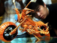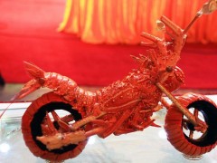 據(jù)英國(guó)《每日郵報(bào)》9月14日?qǐng)?bào)道,來自中國(guó)臺(tái)灣地區(qū)的廚師及食物藝術(shù)專家黃明博(音),因不忍心扔掉食物色彩鮮亮的外殼,于是大膽創(chuàng)新,充分利用每一寸龍蝦的外殼,巧手打造出了一系列迷你版的摩托車模型。