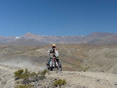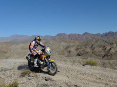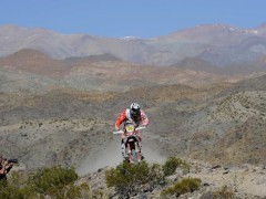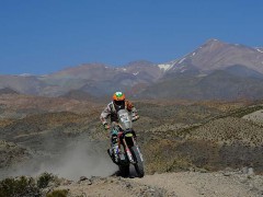 2014年達喀爾第4賽段,摩托車組方面,駕駛著450 SR SHERCO的西班牙車手加西亞力壓KTM雙雄洛佩斯和科馬以5小時29分13秒贏得賽段冠軍,不過總成績榜上還是另一位西班牙好手巴雷達-波特以15小時39分53秒領(lǐng)跑,科馬和洛佩斯分列2、3位,衛(wèi)冕冠軍法國好手德普雷則以41分17秒的差距暫時退居第6名的位置。