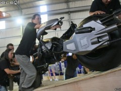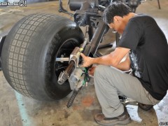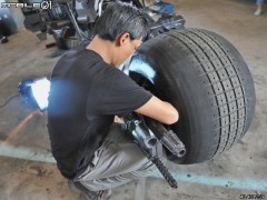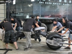 戲中蝙蝠俠讓人印象深刻的莫過于那些稀有的先進(jìn)武器,電影中武器與交通工具不但聲光效果十足,且在真實(shí)世界中都算是非常先進(jìn)的高科技產(chǎn)品。像是蝙蝠俠的服裝、武器、蝙蝠車、蝙蝠摩托車、蝙蝠飛行器,都是真有實(shí)物,戲組都是重金打造真實(shí)的裝備,在電影中大批人馬激烈交戰(zhàn),更是展示了許多未知的武器。這次,筆者有幸受到美商華納兄弟臺(tái)灣分公司之邀,能零距離接觸電影中的蝙蝠摩托車,據(jù)傳聞這是臺(tái)以真實(shí)摩托車引擎打造而成的蝙蝠摩托車,就跟著小惡魔的腳步一起零距離欣賞這臺(tái)帥氣又威風(fēng)的蝙蝠戰(zhàn)車吧!
