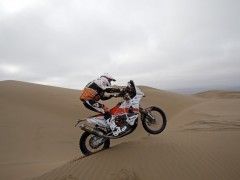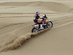 北京時(shí)間1月14日凌晨,2015年達(dá)喀爾拉力賽結(jié)束了第9賽段比賽的爭(zhēng)奪,本賽段從伊基克出發(fā),終點(diǎn)設(shè)在卡拉馬,賽段全長(zhǎng)539公里,其中特殊賽段全長(zhǎng)451公里。摩托車(chē)組本田車(chē)隊(duì)羅德里格茲拿到賽段最快,總成績(jī)榜上領(lǐng)跑的依然是衛(wèi)冕冠軍KTM車(chē)隊(duì)西班牙車(chē)手科馬。