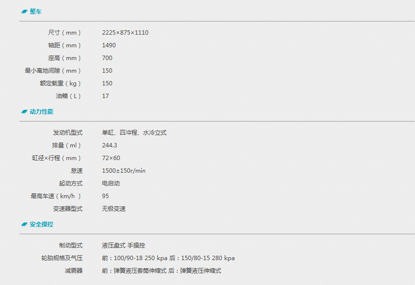 采用CTV自動無極變速250CC水冷發(fā)動機,遠離了在駕駛中頻繁換的煩惱,讓您的旅途更輕松自在。高速時具有凌厲的沖刺感,中速時具有平穩(wěn)的韻律感,低速時具有圓潤的順暢感,動力隨心所欲;