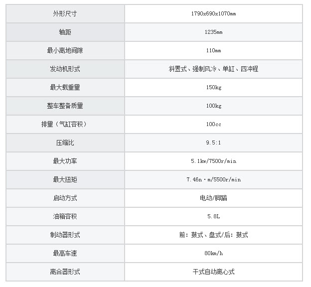 五羊本田踏板車喜悅100摩托車參數(shù)