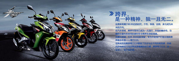 五羊本田首款跨界車??缃缡且环N精神,獨(dú)一且無(wú)二。這是即將屬于80、90后的時(shí)代,個(gè)性、張揚(yáng)、自我、多元成為了未來(lái)的方向。在汽車領(lǐng)域,跨界車型早已成為一大流行,外觀的融合性、功能的全面性和使用的便利性令跨界車倍受青睞。而摩托領(lǐng)域,五羊-本田創(chuàng)新突破,專為年輕用戶打造出首款跨界理念車型——彎刀110。全新類別的跨界彎刀塑造了完全與眾不同的視覺(jué)感,而領(lǐng)先的電噴動(dòng)力技術(shù)帶來(lái)更暢爽的動(dòng)力感,跨界彎刀,獨(dú)一且無(wú)二,至少現(xiàn)在是。我不虛偽、不低調(diào)。一個(gè)人的時(shí)候,愛(ài)怎樣就怎樣,不用表演也不用偽裝。享受所有的經(jīng)歷享受生活給我的所有待遇像一把彎刀越磨越利。(市場(chǎng)價(jià)格在11000,每個(gè)地方價(jià)格不同)