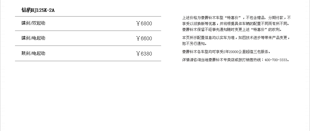豪爵鈴木 鉆豹HJ125K-2A 摩托車